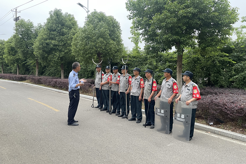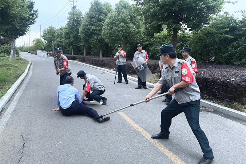 派出所民警首先结合近期冒充公检法的反诈案例,普及反诈知识,提醒安保面对可疑情况时及时劝阻,随后讲解了反恐怖主义的相关法律和恐怖活动案例,同时警醒安保人员预防个人极端主义,树立责任意识,守住校园门口的第一道关,最后结合各种防恐暴器材用途及使用方法,在团队合作、语言威慑、防护器材使用技巧等方面进行了现场模拟演练。