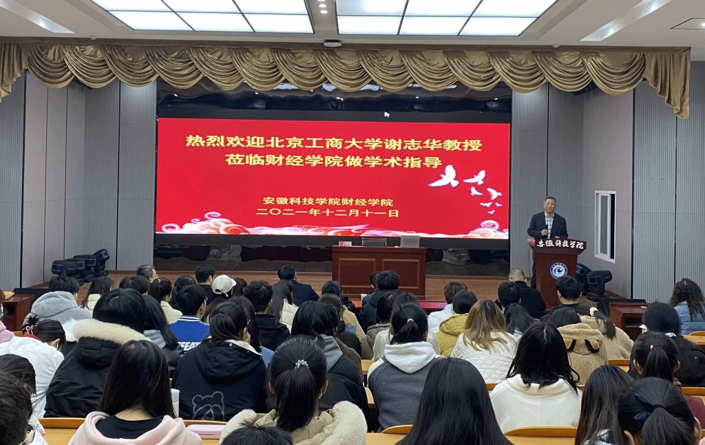 2021年12月11日上午,北京工商大学原副校长、现任教育部工商管理学科指导委员会副主任委员谢志华教授应邀莅临我校财经学院指导新商科专业建设,安徽财经大学会计学院院长翟胜宝教授随行指导。谢志华在敏行楼A一楼报告厅做了题为“新技术与新商科”的学术讲座,财神在线登录官网党委委员、副校长黄友锐、教务处处长赵伟峰、财经学院党政领导和全体教职工以及2021级会计学、2021级金融工程专业学生参加报告会。财经学院院长郝世绵主持报告会。