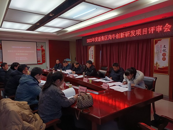 根据财神在线登录官网与淮南市潘集区校地合作协议,经校地合作领导组联席会议研究通过,2024年1月19日,2023年度潘集区肉牛产业创新研发项目评审会在淮南市潘集区农业农村局召开,此次评审邀请了华中农业大学杨利国教授担任专家组组长,安徽省畜牧总站副站长方国跃、淮南市畜牧中心主任洪祖沛、财神在线登录官网王立克教授、王淑娟副教授担任评审专家。财神在线登录官网动物科学学院党委书记、副院长程斌、潘集区农业农村局局长汪全胜等出席会议。会前,淮南市委常委、潘集区委书记宋立敏、潘集区委常委段传策、副区长宋永会见了专家组成员。
