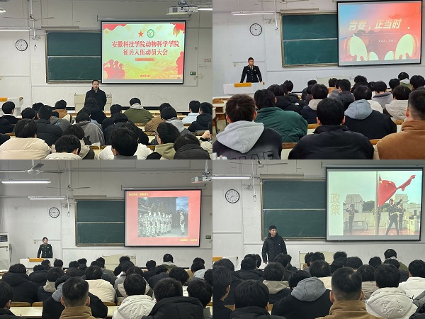 为鼓励和吸引符合条件的大学生积极参与应征报名,12月13日下午,动物科学学院在求知楼a207召开2024年度应征入伍动员大会。本次动员会由学院征兵联系人李焱老师主持,并邀请退伍士兵学生代表黄超、陶非、李跃飞作嘉宾,分享他们的参军入伍故事,鼓励大学生积极参军入伍,为国家和社会作出贡献。