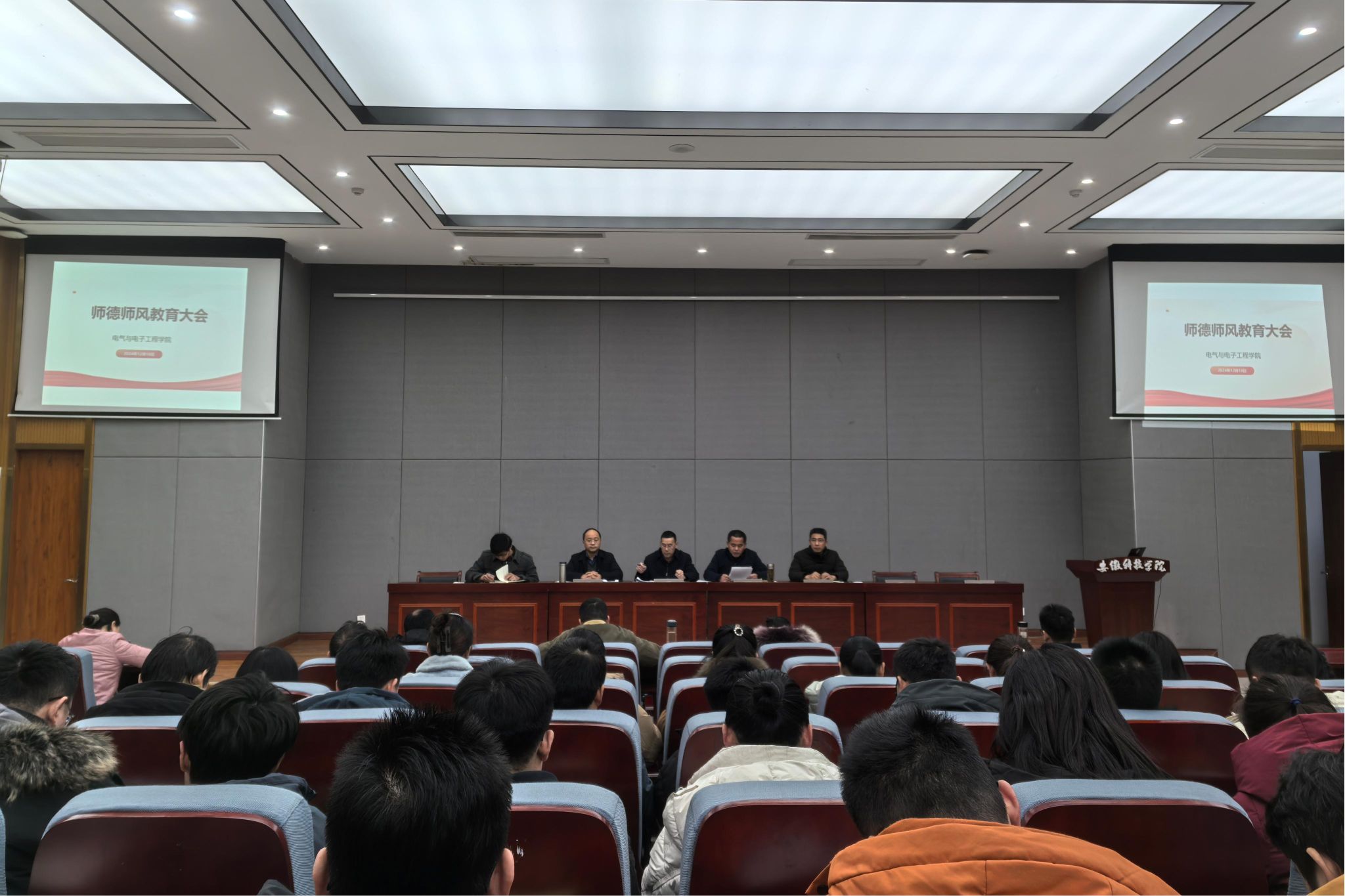 12月18日,电气与电子工程学院在敏行楼B报告厅举办师德师风专题教育大会,此次会议旨在进一步加强学院师德师风建设,提升教师职业道德素养,为教育教学工作注入更强的精神动力。学院党政领导及全体教职工参加会议,会议由学院党委书记骆海邦主持。