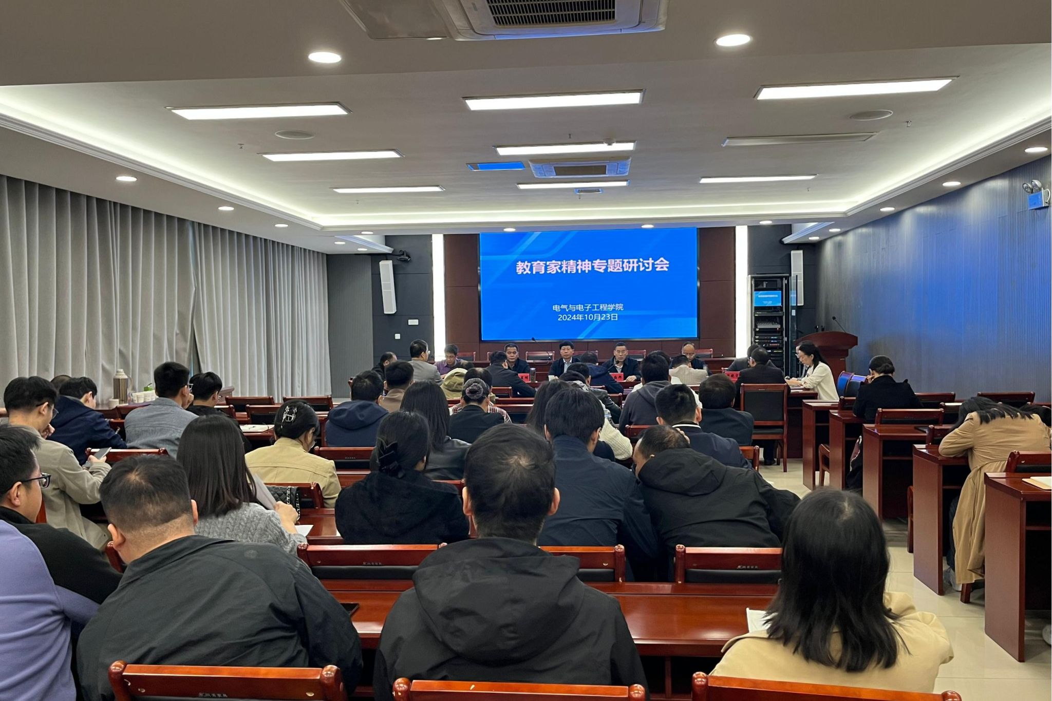10月23日,电气与电子工程学院于西辅楼111会议室召开教育家精神专题研讨会。校党委书记时伟莅临指导,学院党政班子、全体教职工参加会议,会议由学院党委书记骆海邦主持。
