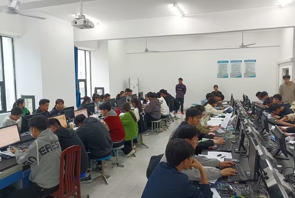 由合肥中科深谷发展科技有限公司、安徽芒果教育科技有限公司联合赞助的“2023年安徽省机器人大赛-单片机与嵌入式系统竞赛校内选拔赛”于4月22日上午在我校举行。本次竞赛共有110人报名参赛,其中A类平台40组80人、B类平台15组30人。在教务处细心指导和电气与电子工程学院精心组织下,由电气与电子工程学院、机械工程学院、信息与网络工程学院、中科深谷公司多部门联合组成11名裁判团。