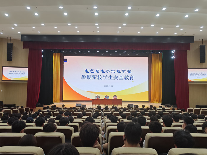 为加强暑期留校管理工作,确保留校学生的安全。7月2日下午,电气与电子工程学院在龙湖校区东附楼报告厅举行2025年暑期留校学生安全教育,学院党委副书记尚磊出席会议并讲话,全体辅导员及留校学生参加了会议,会议由党政办公室主任王延丽主持。