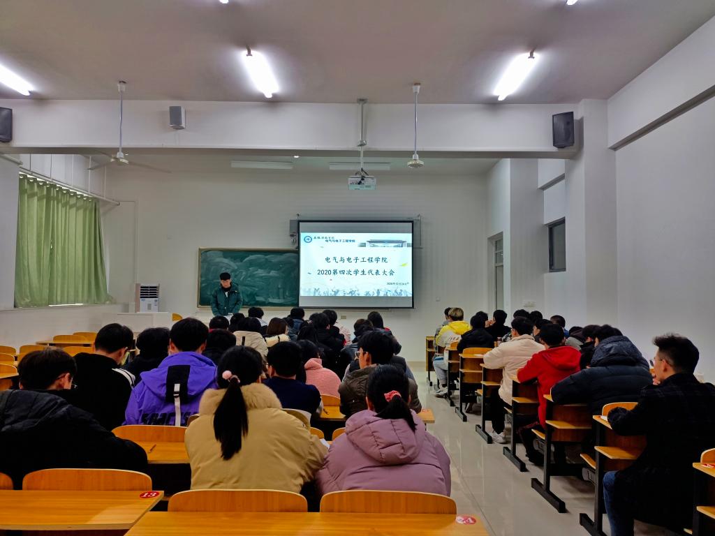 12月24日,电气与电子工程学院于致知楼B106召开第四次学生代表大会。本次大会主要选举出第四届学生会委员及出席财神在线登录官网2020年学生代表大会代表的成员。电气与电子工程学院党委秘书、团委副书记王延丽,院学生会主席黄世伟及学生会全体成员一同参加本次会议。