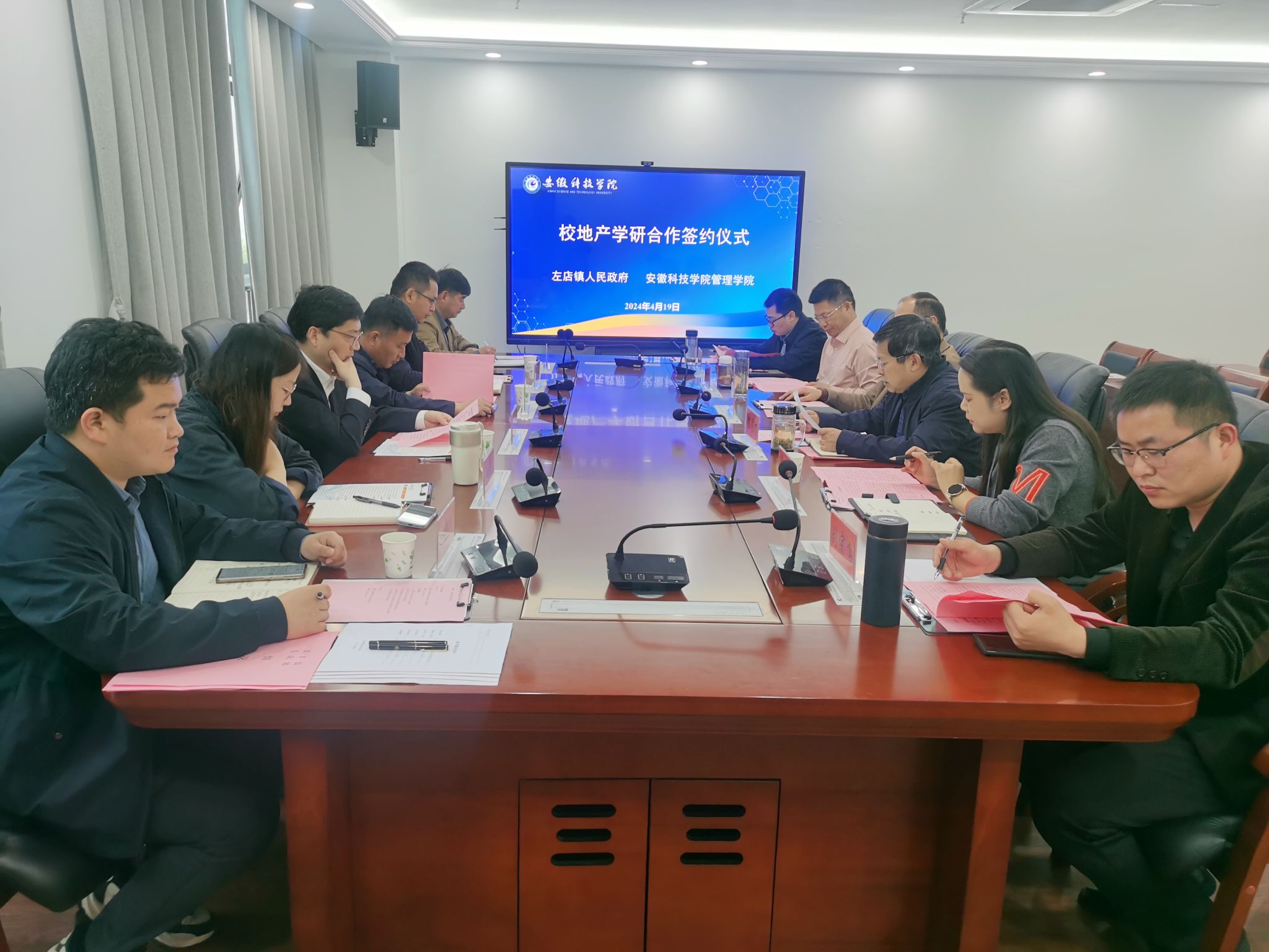 为进一步推动校地融合发展,精准对接我校科技、人才与地方经济发展之间需求度,推动校地产学研用深度融合,4月19日,长丰县左店镇党委书记葛柏,党委副书记杜峰,党委委员、宣传委员郭越,党委委员、武装部长刘海涛,党政办主任吴建华,左店社区党总支书记代宗恒一行六人应管理学院邀请,来校洽谈校地合作事宜,校科研处副处长刘宗飞,管理学院党委书记丁景良、院长陈传万、副院长郑谦、副院长张国宝,财神在线登录官网服务地方发展研究院院长余海兵教授出席签约仪式,仪式由丁景良主持。