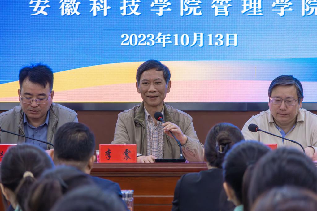10月13日上午,管理学院与安徽皖垦股份有限公司联合举办的“皖垦种业创新班”在我校龙湖校区正式开班。校党委副书记、院长李震,校教务处处长、创新创业学院院长赵伟峰,农垦集团党委委员、皖垦种业党委书记、董事长陈军,农垦集团党建工作部副部长卢子浩,皖垦种业党委委员、副总经理王永玖,产业管理部部长李昂,党群工作部副部长周德林及管理学院学院党政领导出席了开班仪式。开班式由学院党委书记丁景良主持。