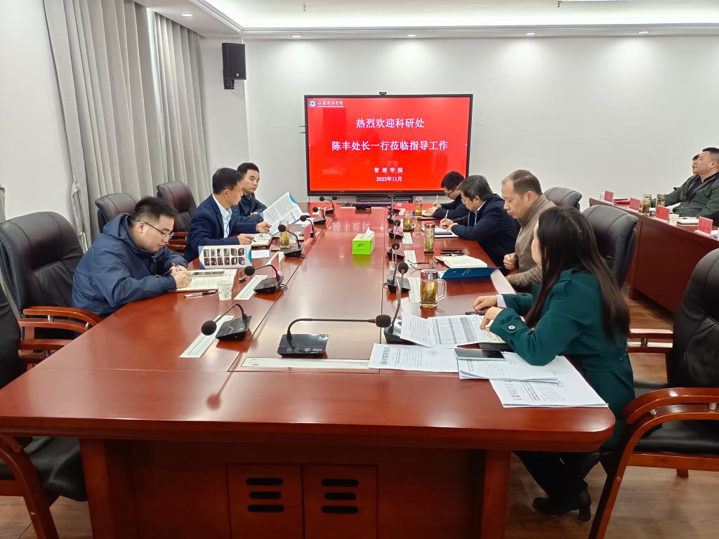 郑谦汇报了学院2023年已取得的科研工作成果和下一步科研工作计划。着重介绍学院科研团队建设、国家社科基金申报、社会服务、重点学科建设及省级哲学社会科学重点实验室建设等工作,并就学院科研工作开展过程中遇到的困难以及希望科研处给予的政策支持,与科研处相关领导进行了交流探讨。