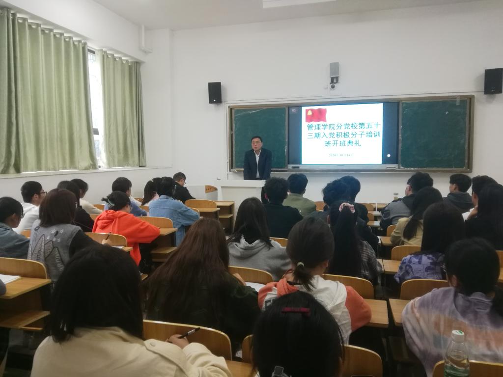 管理学院成功举办分党校第五十三期入党积极分子培训班开班典礼