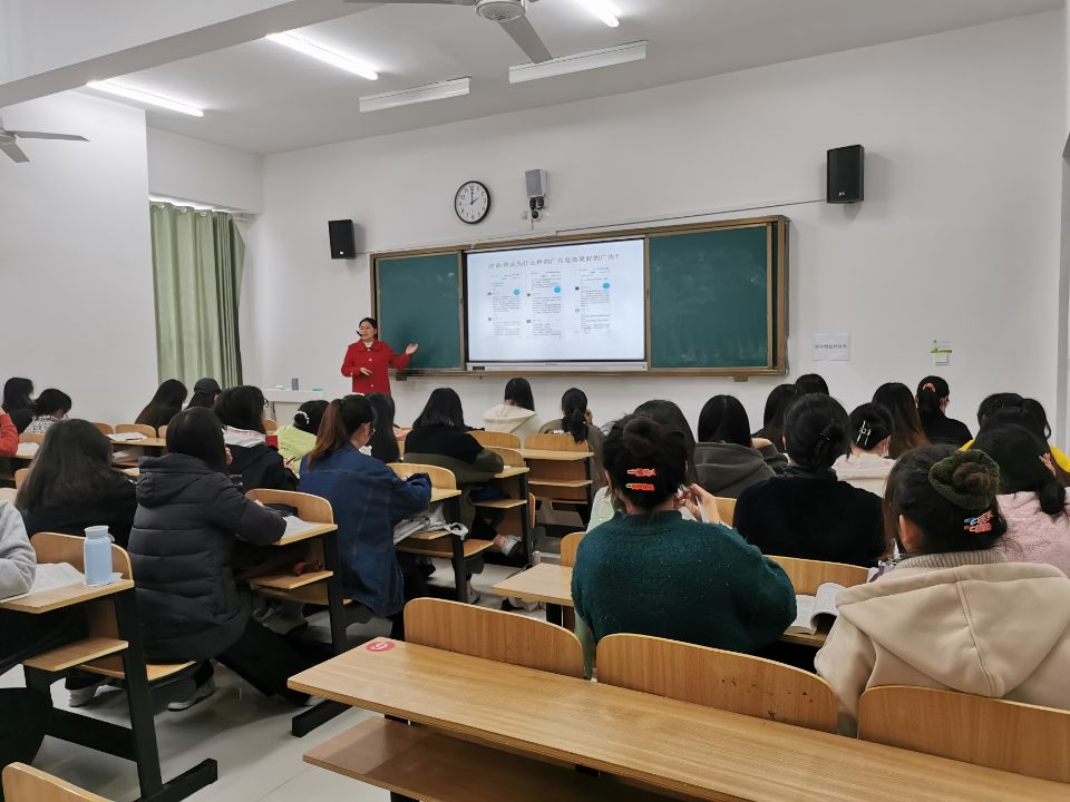 省级“课程思政”示范课程项目负责人雷宇老师负责《广告学》“课程思政”示范公开课主讲,讲授的主要内容为:广告效果。雷老师通过新媒体教学工具学习通发布“什么样的广告是好广告?”等话题营造学生对广告效果评估的热烈谈论;同时,结合迪奥广告案例分析,联系党的二十大提出的“警惕文化入侵”精神,提醒学生警惕文化入侵,帮助学生树立文化自信,坚定传播中华优秀传统文化的决心;雷老师指出广告效果应从传播效果、经济效果、社会效果三个层次进行综合评估,强调广告的制作应与主流价值观相一致,弘扬社会正气、传播社会正能量。
