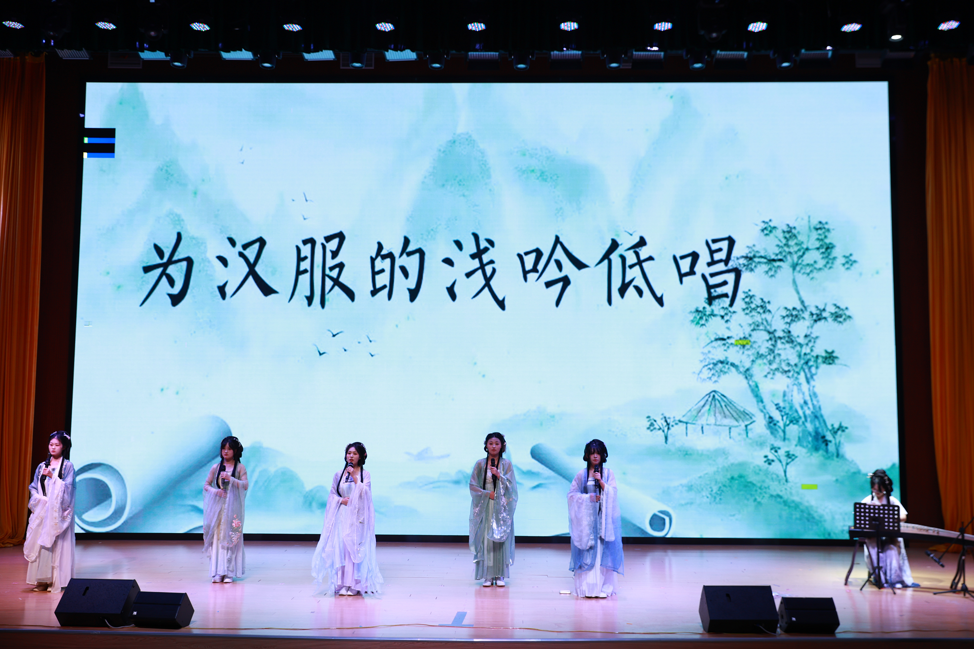 夜幕低垂,光影璀璨,文艺演出在青春的旋律和动感的开场舞中启幕。本场晚会分为“管韵流光 扬帆起航”、“灼灼风华 青春激扬”、“红心向党 共谱华章”三个篇章,带来了一场集舞蹈、歌曲、相声、小品、朗诵等多种艺术形式的视觉盛宴。动感十足的舞蹈节目展现了同学们的蓬勃朝气与青春活力,婉转动人的歌曲演唱则传递着温暖人心的力量。小品相声以幽默风趣的风格引得现场观众阵阵欢笑,配音节目则以其时尚新颖的表现形式,展现了当代大学生的独特风采与无限活力。中场互动环节更是紧张刺激,将晚会气氛推向了高潮。特别值得一提的是,原创光影剧《平凡之路》细腻描绘了新生的成长蜕变,古筝朗诵《为汉服的浅吟低唱》带来了一场跨越时空的文化盛宴,校“八一社”的武术表演震撼人心,唱响了青春报国的时代强音。最终,整场晚会在研究生节目《诗意与麦浪的交响》的深情朗诵中缓缓落下帷幕,为这个充满激情与活力的夜晚画上了圆满的句号。