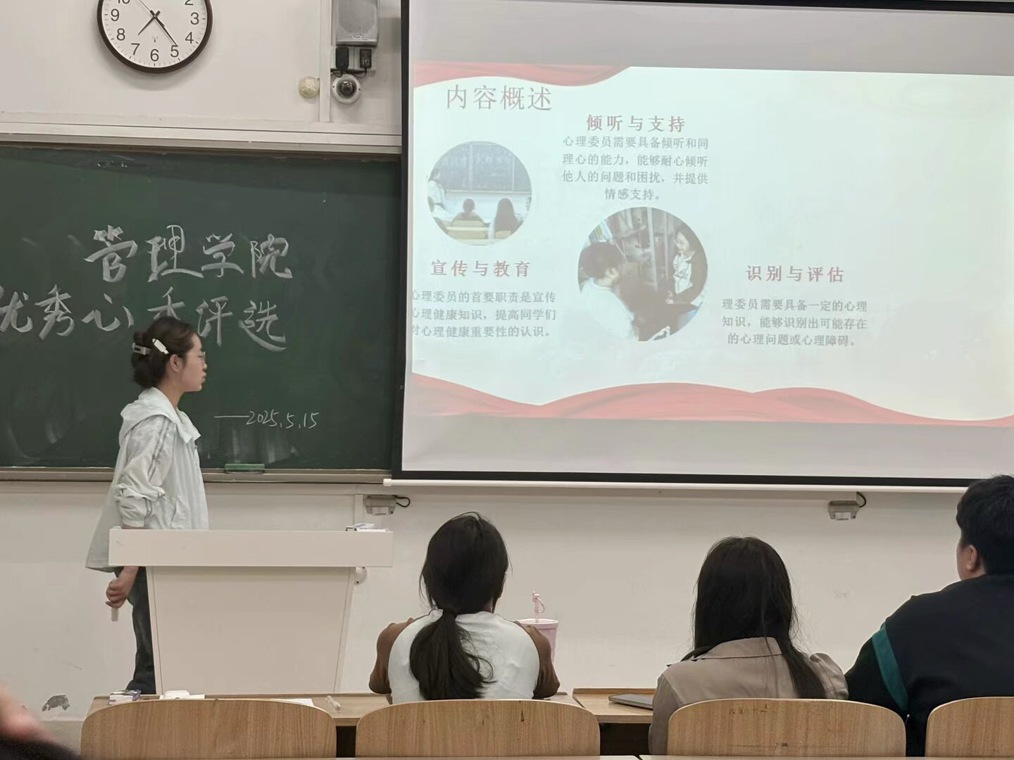 为深化心理健康教育工作,表彰先进典型,激励心理委员积极发挥朋辈支持作用,提升心理育人工作实效,管理学院于5月19日晚在致知楼A107教室举办“优秀心理委员”竞选活动。管理学院辅导员姚姝媛以及各班心理委员出席本次活动。