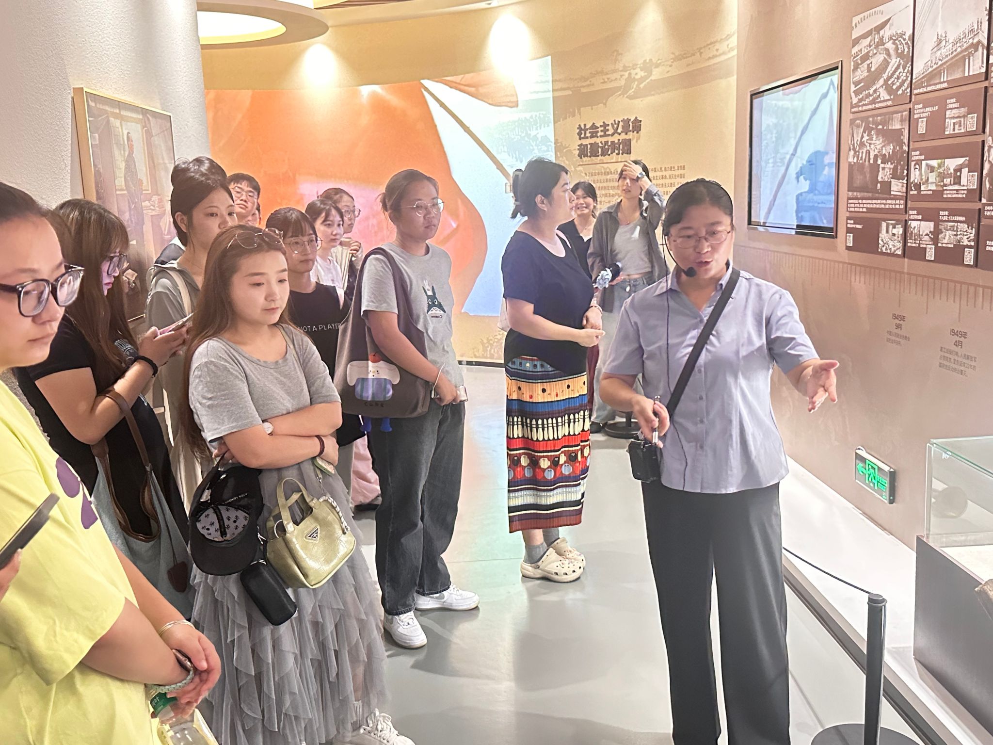 活动当天,研究生新生们在学院辅导员的带领下有序抵达禾泉小镇中国共产党历史学习馆。馆内通过历史图片、文献资料、场景还原和实物展品,系统展现了中国共产党自成立以来带领中国人民进行革命、建设、改革和发展的辉煌历程。从建党之初的“开天辟地”,到新中国建设的“改天换地”,再到改革开放的“翻天覆地”与新时代的“惊天动地”,每一部分内容都生动记录了一个百年大党的峥嵘岁月和中华民族迈向复兴的坚定步伐。研学过程中,同学们跟随着讲解节奏,认真聆听每一段历史背后的故事,不时驻足凝视展品,轻声交流感悟。深刻体会到中国共产党“为中国人民谋幸福、为中华民族谋复兴”的初心和使命。