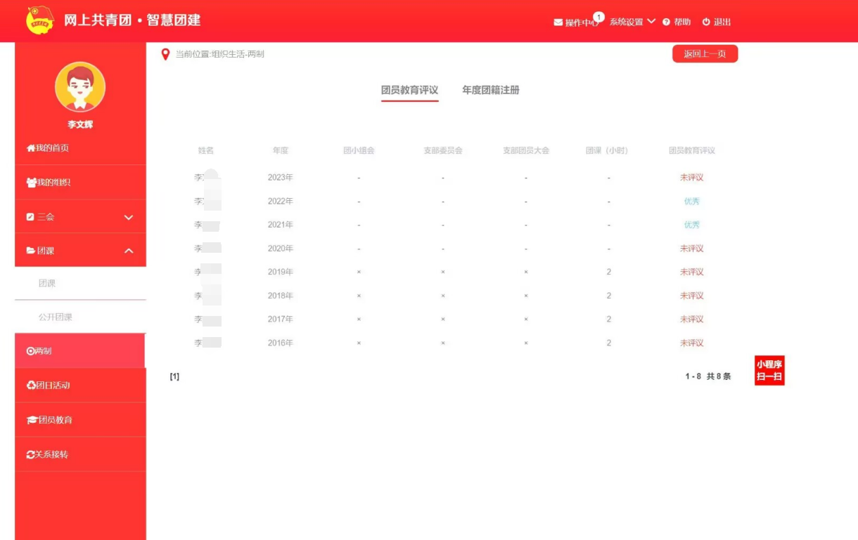 图2 团员教育评议查看方式及格式要求(打印此页面提交)
