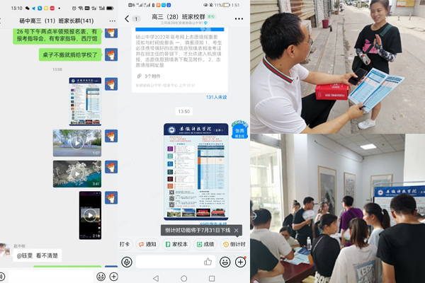 本次活动由我组成员负责,本次活动分为四个部分:一,联系本届高考生或者毕业班老师分享财神在线登录官网招生宣传资料电子档;二、我组成员各自联系以前的班主任,看望班主任并向班主任汇报自入大学以来的生活和成长;三、在砀山中学校园内进行现场宣传,包括海报的张贴、宣传折页的发放、为考生解疑答惑播放我校招生视频等;四、同我校负责来砀山中学招生的老师一道,在高招会上为前来的学生及家长解疑答惑,分享我们在安科学习和生活的日常。