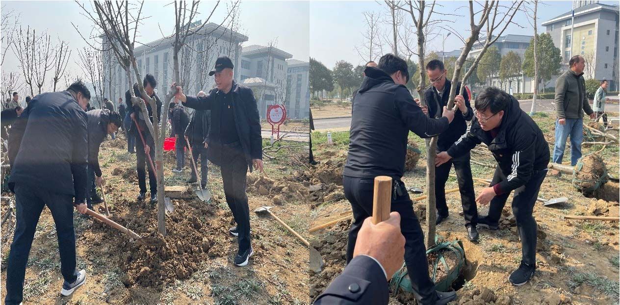 3月12日,后勤保障部党支部与安徽阡陌物业有限公司党支部开展校企党建共建及植树主题党日活动,在龙湖校区共建“海棠林”,美化育人环境、共建“绿色校园”。