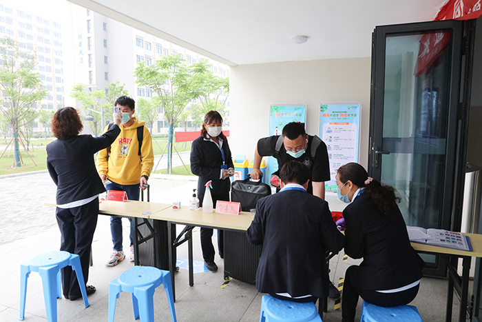 首批同学返校让寂静了几个月的校园,再次热闹起来。学生公寓、食堂、教学楼、临时留观点等重点公共区域张贴着引导和防疫标识。校领导深入现场看望学生和工作人员,查看准备工作情况;相关部门负责人和各学院党总支书记、辅导员早早来到了报到现场,接待报到学生、提供周到服务。