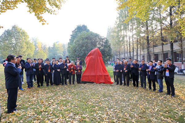 在一片热烈的掌声和欢呼声中,刘正和湖南隆平营销总监刘俊校友等为景观石揭幕。