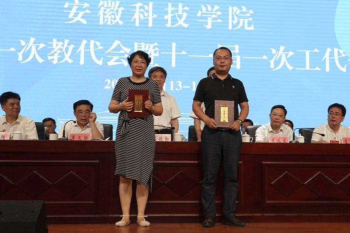 7月14日下午,我校十届一次教代会暨十届一次工代会圆满完成各项议程,在大学生活动中心胜利闭幕。校党委书记蒋德勤,党委副书记、校长李震,党委副书记韦文联,党委委员、副校长黄远友,党委委员、纪委书记、监察专员王强,党委委员、副校长黄友锐,党委委员、副校长李升和,督导员郭亮及主席团其他成员出席大会并在主席台就座。会议由韦文联主持。