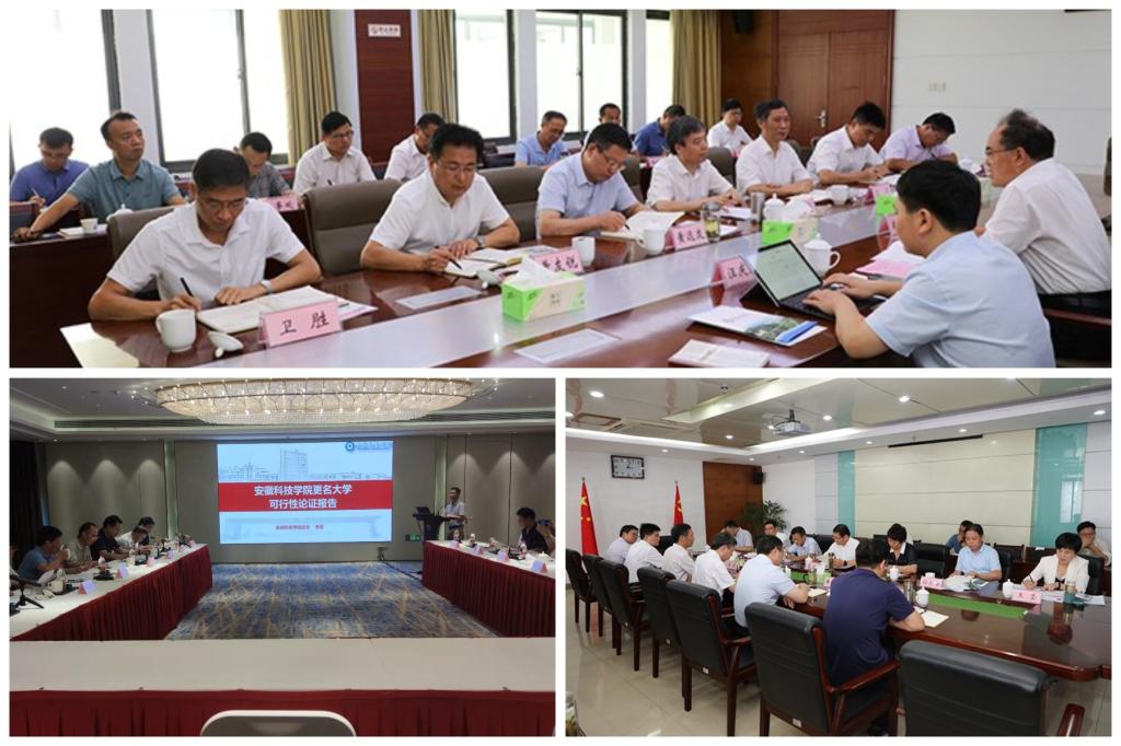 【综述】8月30日,我校在芜湖组织召开申报更名大学相关材料专家论证会,校党委书记蒋德勤,党委副书记、校长李震,党委委员、副校长黄远友,党委委员、副校长黄友锐,党委委员、副校长李升和,校督导员郭亮出席论证会。原教育厅厅长、中国科技大学教授程艺、安徽大学党委书记蔡敬民、安徽工程大学党委书记刘宁、安徽中医药大学党委书记王先俊、安徽建筑大学党委书记孙道胜、安徽农业大学发展规划处处长方明等6位专家共同为我校更名大学工作出谋划策;9月9日,校党委书记蒋德勤在凤阳校区新图书馆九楼会议室主持召开“更名大学纳入安徽省高校设置规划”申报材料审定会,党委副书记、校长李震,党委委员、副校长黄远友,党委委员、纪委书记、监察专员王强,党委委员、副校长黄友锐,党委委员、副校长李升和出席审定会。与会领导和有关部门负责人围绕更名大学纳入安徽省“十四五”高校设置规划申报材料进行了充分研讨论证;9月27日,省教育厅在合肥组织召开高校设置规划答辩会,校党委书记蒋德勤,党委副书记、校长李震,党委委员、副校长李升和参加答辩会。李震代表我校在会上就高校设置规划申报进行了汇报,与会领导和专家高度赞赏我校近年来的办学成就,充分肯定我校更名大学工作。