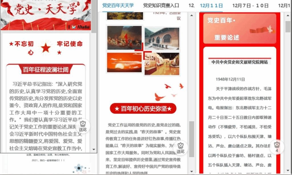本届易班网络文化节围绕活动主题,以党史学习教育为重点,积极打造“1234,易起学党史”系列品牌活动,让党史学习教育在易班开展得“有声有色”“有形有实”。“1”是以一场易班网络文化节开幕,让学生真正“动”起来;“2”是线上线下两场大学生党史知识大赛激活“红色引擎”,全校大学生参与率超过90%,让党史学习教育“燃”起来;“3”是开设“党史百年天天学”“党史故事100讲”“易思堂”三个特色专栏,通过图文专栏、主题讲座、微视频,联合辅导员与思政课教师同向同行打造党史教育“云课堂”,让党史学习教育“热”起来;“4”是设置“同上四史大课学习讨论留言板”“安科易话题”“青春运动图册”“易家电台”四个互动应用,展示大学生同上一堂思政大课的所思所感、学生党员自主领读党史书籍音频、主题视频,引发广泛关注,让党史学习教育“火”起来。