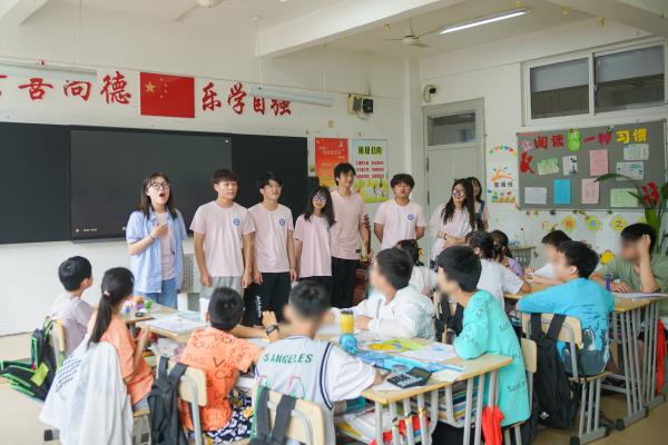 当《孤勇者》的前奏响起,团队成员花凯旋和李席旺的激情弹唱带动了全场。“人只有不完美值得歌颂”“谁说站在光里的才算英雄”一句一句的歌词,鼓舞着教室里的每一位听众。孩子们欢呼雀跃、手舞足蹈。