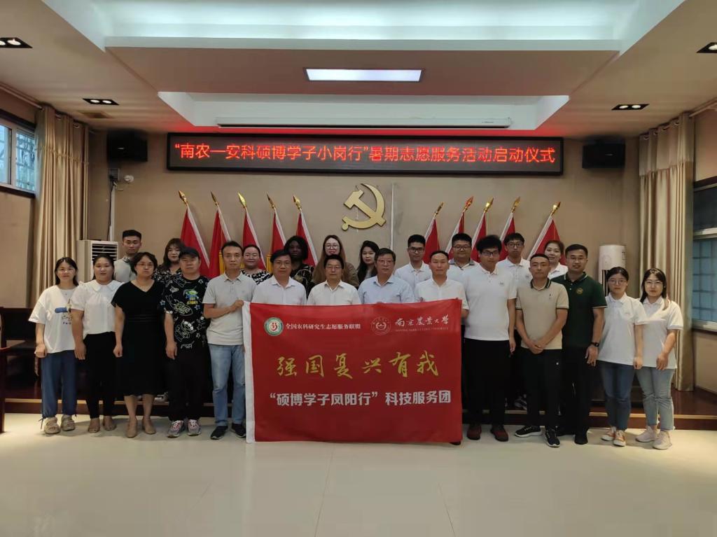 为深入贯彻落实国家乡村振兴战略,践行全国农科研究生志愿服务联盟宗旨,加强联盟成员单位之间的沟通交流,2022年7月4日,首届“南农-安科硕博学子小岗行”暑期志愿服务活动启动仪式在中国农村改革发源地小岗村隆重举行。我校党委委员、副院长李升和,南京农业大学党委研究生工作部副部长林江辉,我校党委研究生工作部副部长靳二辉,凤阳县党委常委、小岗村党委第一书记李锦柱,凤阳县企业服务中心副主任、小岗村党委副书记严永兵出席启动仪式。启动仪式由靳二辉主持。