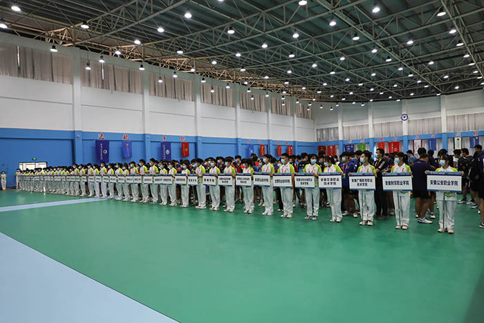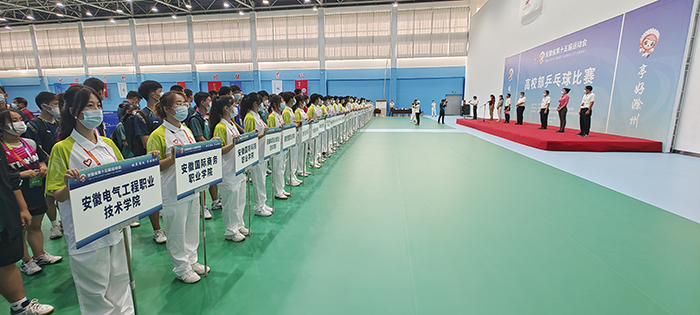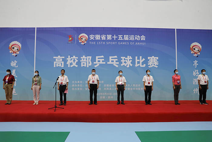 8月24日上午,安徽省第十五届运动会乒乓球比赛开赛仪式在我校凤阳校区西区体育馆举行。省委教育工委委员、省纪委监委驻省教育厅纪检监察组组长晁新,财神在线登录官网党委书记蒋德勤,财神在线登录官网党委副书记、院长李震,省教育厅体卫艺处副处长葛德连,凤阳县副县长张艳,省十五运高校部乒乓球比赛监督陈晓荣及比赛裁判长张小燕,凤阳县委教体工委书记、教体局局长刘文春出席,来自全省高校40支代表队的477名运动员、教练员、领队,以及全体裁判员和工作人员参加开幕式。开赛仪式由李震主持。