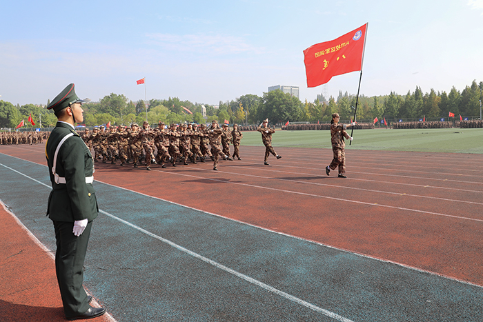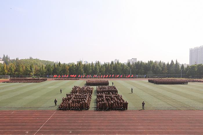 奋楫扬帆风正劲,策马扬鞭正当时。军训汇报操演开始,历经两周军训的洗礼,参加军训的2022级学子们身着戎装、军容整齐,以标准的动作、整齐的步伐、饱满的热情迎接领导和老师们的检阅。在分列式表演中,各军训方队迈着坚定有力的步伐、喊着雄壮嘹亮的口号正步行进到主席台前接受检阅。方阵特色表演方队创造性地摆出了“1921”“2022”“喜迎二十大”“请党放心,强国有我”等图案字样。军体拳、匍匐刀、五步拳等方队在教官口号的带领下,动作精炼,节奏分明,沉着有力,是军训操演中一道亮丽的风景。新生们在军训操演中所表现的组织性、纪律性充分彰显了我校学子的精神风貌,赢得了检阅领导的一致好评和在场师生的阵阵掌声。