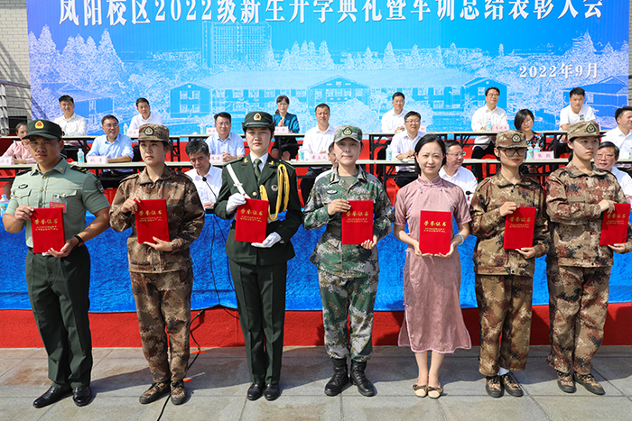 9月30日上午,我校凤阳校区2022级新生开学典礼暨军训汇报操演在西区田径运动场隆重举行。校党委副书记、院长李震,党委委员、副院长黄远友,党委委员、纪委书记、监察专员王强,党委委员、副院长李升和,陆军装甲兵学院蚌埠校区军政训练系部队管理教研室少校、凤阳校区军训团团长左惟明等出席大会并在主席台前排就座。大会由王强主持。