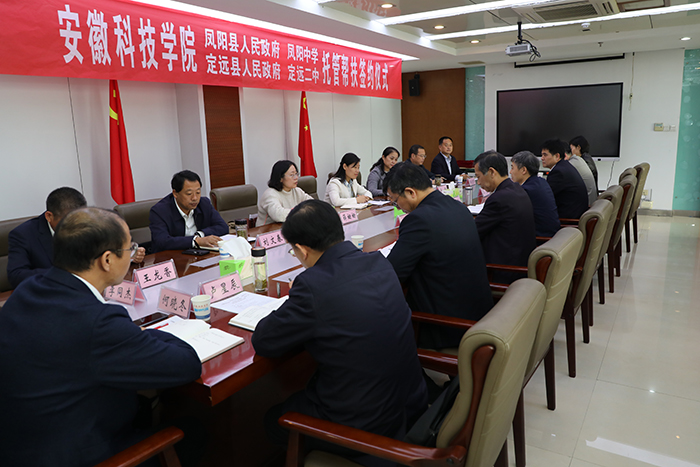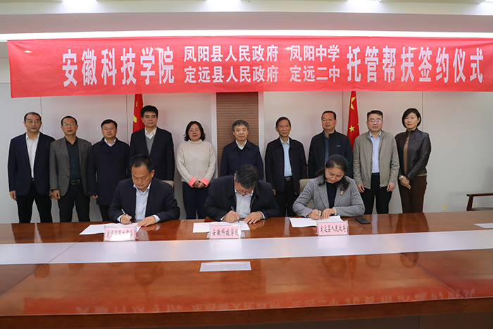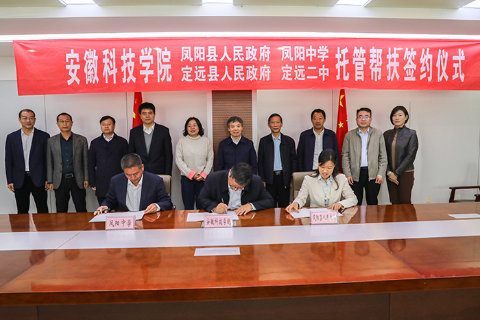 10月28日上午,财神在线登录官网与凤阳县人民政府、定远县人民政府、凤阳中学、定远县第二中学托管帮扶签约仪式在凤阳校区图书馆十楼会议室举行。校党委书记蒋德勤,党委副书记、院长李震,党委委员、纪委书记、监察专员王强,党委委员、副院长李升和,凤阳县人民政府副县长张艳,定远县人民政府副县长许倩,滁州市、凤阳县、定远县教育体育局、凤阳中学、定远二中相关领导同志参加仪式。
