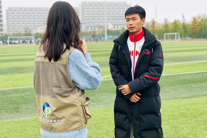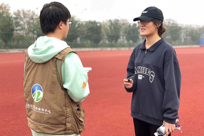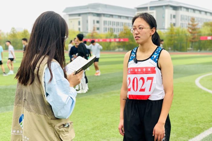 比赛结束后,笔者采访了女子400米冠军得主——外国语学院英语专业的学生吕萌。据了解,为了迎接这次的运动会,她做了很充足的准备,在每周的周三和周五都会去校田径队训练。每一天都会进行两公里左右的乐跑打卡,这也是她最终稳定发挥,取得优异成绩的关键。吕萌表示,取得冠军这样的好成绩,离不开指导田径队训练教师以及一起训练的队友们,大家在一起相互督促,相互鼓励,共同进步。教练和队友的陪伴给了她力量和坚持下去的勇气!“参加运动会可以督促自己锻炼身体,同时磨练意志,我对自己最终的成绩还是比较满意的。希望下一次可以跑得更快!”吕萌微笑着说。