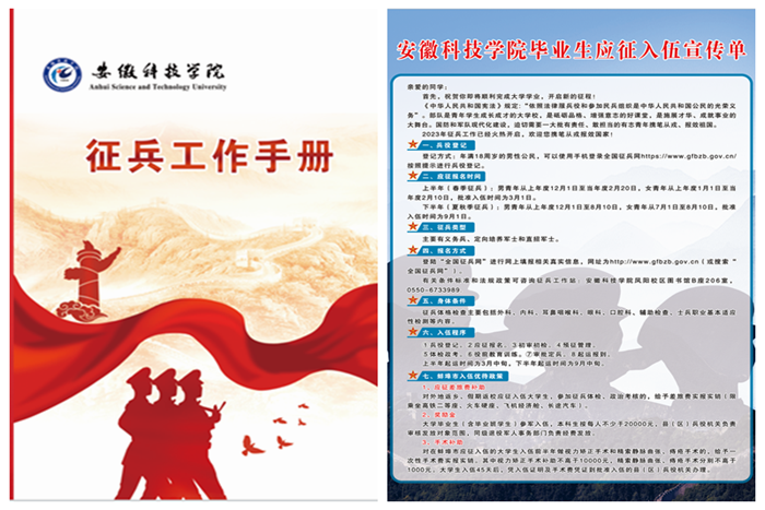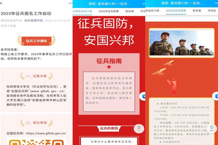 立体化宣传强化新希望。编印发放500多册财神在线登录官网征兵工作手册,涵盖法规、政策和征兵工作指南,成为领导干部和一线工作人员征兵的有力帮手。制作发放3500余份“致安科2023届毕业生的一封信”宣传彩页,做到应届毕业生人人知晓应征程序、优待政策和咨询电话。各学院利用主题班会、征兵工作动员大会、辅导员专题会议、谈心谈话等形式,利用班级qq工作群、易班专栏、微信公众号、网站等多媒体矩阵发布征兵动态、传播政策信息,营造立体化、全方位、多层次的宣传新格局,助推征兵工作掀起新高潮。