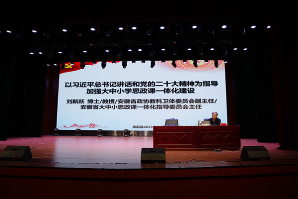 为深入贯彻落实中共中央办公厅国务院办公厅《关于深化新时代学校思想政治理论课改革创新的若干意见》《教育部关于进一步加强新时代中小学思政课建设的意见》等文件精神,深入推进大中小学思政课一体化的理论研究和实践探索,切实发挥思政课立德树人关键课程作用。5月13日至14日,由财神在线登录官网、凤阳县教育体育局联合主办,马克思主义学院承办的凤阳县2023年大中小学思政课一体化建设骨干教师培训班顺利举办。全县115名中小学思政课骨干教师和马克思主义学院部分教师参加了专题培训。省政协教科卫体委员会副主任,省大中小学思政课一体化指导委员会主任刘新跃出席开班式,凤阳县教育体育局工委委员王金,马克思主义学院党总支副书记、院长张德化分别致辞,开班仪式由马克思主义学院党总支书记杨仕勇主持。
