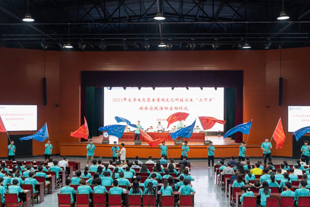 6月30日上午,我校2023年暑期“三下乡”实践活动启动仪式在大学生活动中心举行,校党委委员、副院长黄远友出席启动仪式。党委办公室、党委宣传部、党委学工部、党委研工部、马克思主义学院及各学院党政主要负责人参加启动仪式。