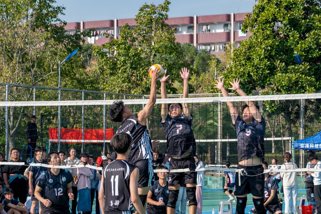 来自凤阳、龙湖校区14个学院的男女排28支队伍经过校区循环赛、季后赛和决赛的激烈角逐,龙湖赛区电气与电子工程学院男子排球队、建筑学院女子排球队分别与凤阳赛区食品工程学院男子排球队、资源与环境学院女子排球队会师总决赛,迎来巅峰对决。随着裁判一声哨起,决赛现场气氛瞬间被拉满。赛场外,观众和球迷的热情呐喊声、加油声此起彼伏。赛场上,运动员们眼神坚定,团结一致,奋勇拼搏,丝毫不放松每一次进攻机会,充分发挥出自己的个人技术和战术配合,绝妙的扣杀、精巧的吊球、准确的拦网,引得赛场外观众发出阵阵喝彩。