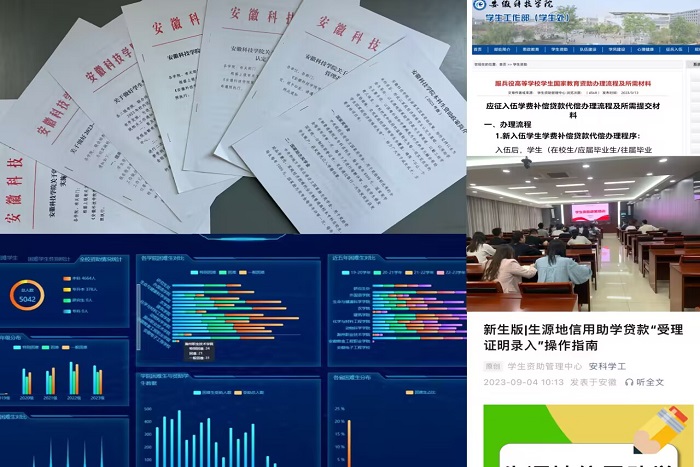 资助保民生、暖民心。2023年度,我校通过修订完善本科生学生资助政策体系,印发《财神在线登录官网学生资助资金管理办法》《财神在线登录官网家庭经济困难学生认定工作办法》《财神在线登录官网学生临时困难补助实施办法》,坚定不移地推进学生资助制度建设,健全协同推进机制,扩大学生资助规模,建立健全“奖、助、贷、勤、补、免”六位一体资助政策体系,确保家庭经济困难学生资助政策全覆盖,不让一名学生因家庭经济困难而失学。自2023年秋季学期开始,我校生源地助学贷款回执录入、困难认定申请、助学金、勤工助学、临时困难补助等全程线上办理,简化手续、提高办事效率,切实保护学生隐私。学生资助中减少学生线下审批表格五类,惠及学生1.5万人次。建立健全学籍与资助信息管理协调机制,各项奖助学金评审、发放前期,会同教务处、招生与就业工作处等开展部门之间学籍、资助数据比对,形成学生资助工作推进合力。定期维护全国学生资助管理信息系统、安徽省建档立卡贫困户家庭学生资助管理系统动态更新智慧资助重点保障人群,开展学籍数据与特殊困难群体数据比对,辅助二级学院精准识别特殊困难群体学生,提升资助对象识别精准度。