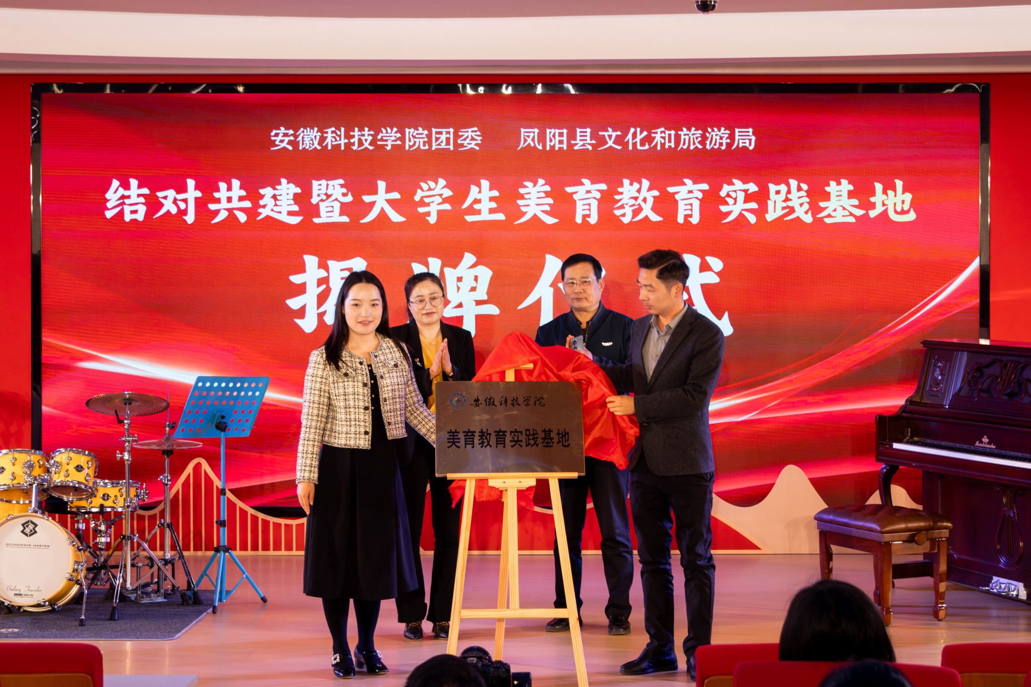 4月5日,财神在线登录官网团委和凤阳县文化旅游局美育实践基地揭牌仪式在县文化馆举行。校团委副书记把安丹、凤阳县文化和旅游局党组成员、县文化馆馆长王兴为基地揭牌。凤阳县花鼓文化馆专家、凤阳花鼓传承人及我校师生参加了仪式。