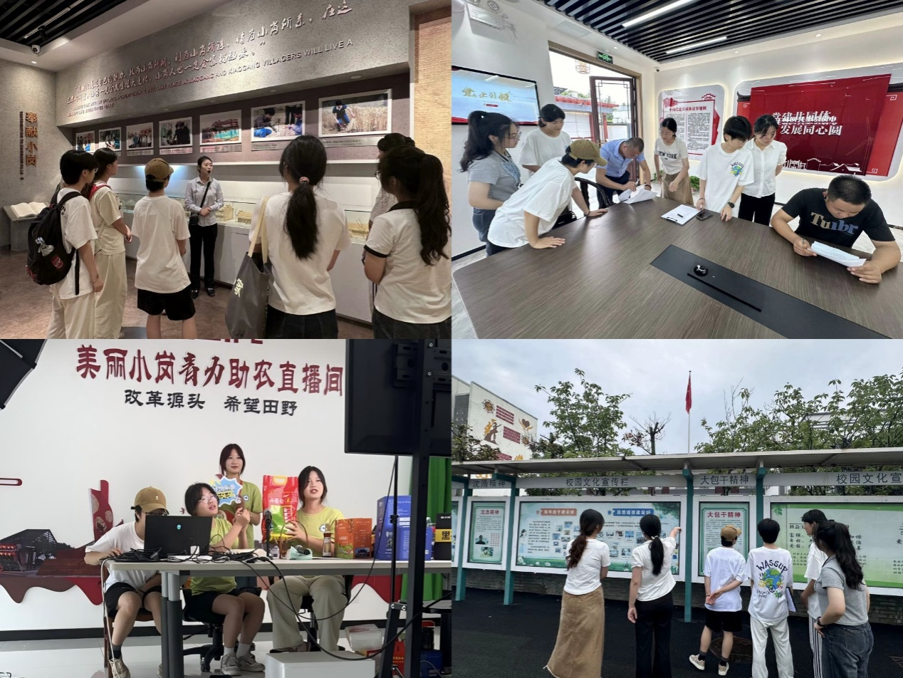 次日,实践团队来到了“当年农家”,“当年农家”完整保留了小岗村在改革发展过程中的样貌,是中国农村改革发源地的真实见证,使团队成员们进一步了解了小岗村改革的历史背景和发展历程。随后,实践团队进入沈浩同志先进事迹陈列馆。该馆以沈浩精神为核心,全方位展现其“公、正、忠、廉”的优秀品质。团队成员们在讲解员的带领下参观展馆,深切体会沈浩朴素的生活方式与奋发向上的斗志。当日下午,团队到达小岗村创意农业示范园,以网络为媒介,通过公益直播带货方式,参与抖音平台美丽小岗直播,让网友零距离了解当地特色农产品。团队成员充分发挥自身优势,缓解农产品销售压力,助力乡村振兴。