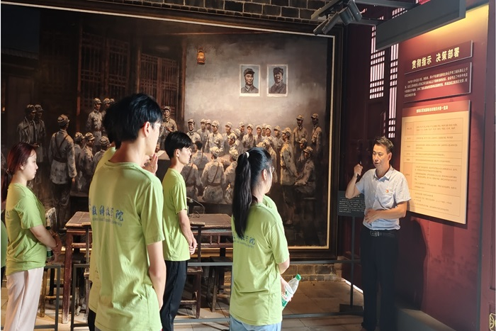 8月6日,实践团队成员来到刘邓大军刘家畈会议旧址,聆听讲解员讲解“千里跃进大别山”的故事,从革命先辈的英勇事迹中汲取力量,深刻感悟“坚守信念、胸怀全局、团结奋进、勇当前锋”的大别山精神,团队成员更加坚定了听党话、跟党走的信念,传承红色革命文化,赓续大别山红色精神。