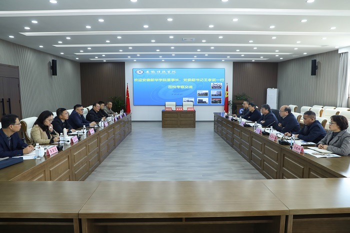 11月5日上午,安徽新华学院董事长、党委副书记王孝武,院长赵良庆,副院长戴昕,副院长王琦进一行到我校考察交流硕士学位授予单位创建及联合培养硕士研究生等工作。校党委副书记、院长李升和,党委委员、副院长王孝义及相关部门负责人热情接待王孝武一行。