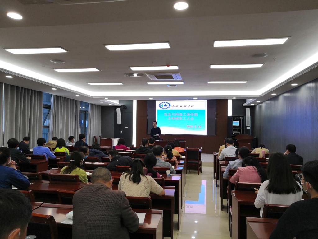 为了进一步强化毕业生就业指导工作的“三全育人”意识,5月13日下午,信息与网络工程学院召开全体教职工大会。信息与网络工程学院副院长余宏杰、副处级辅导员韦乃学及全体教职工参加会议,会议由余宏杰主持。
