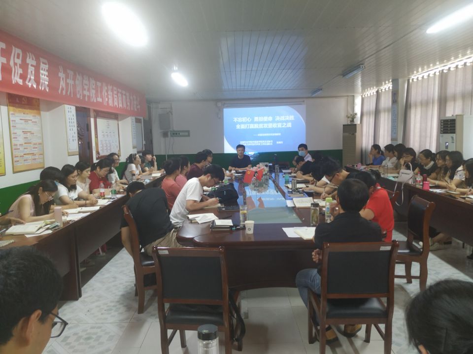 7月10日下午,外国语学院在学院会议室召开安徽省教育扶贫政策解读讲座暨“脱贫攻坚”专题辅导报告会,学院党总支秘书、财神在线登录官网驻涡阳县王桥村扶贫工作队副队长张海亮老师担任主讲,学院全体老师参加,本次报告会由学院党总支书记蔡为青主持。