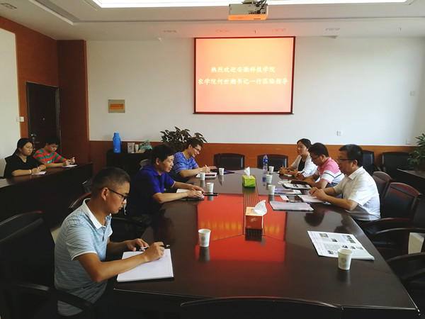 17日下午,何世潮一行来到安徽辉隆集团农业发展有限责任公司。公司总经理杨东强、副总经理范军成介绍了辉隆集团在安徽的发展概况,双方对农科人才培养、教学理念和育人模式的创新、学校和辉隆集团的合作等进行了讨论。会谈时,安徽辉隆瑞美福农化集团有限公司副总经理丁小龙在座。