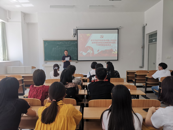 座谈会上,大家敞开心扉,积极发言。辅导员蒋臣说:“抗日战争胜利75年来,中国发生了翻天覆地的变化,全球有目共睹的。特别是这次疫情,更能体现出我们国家和我们党的先进性。作为辅导员,我要把爱国主义精神贯彻落实到工作中,通过专题班会、主题团日、案例分析等形式,带领同学们全面学习,提升学生爱国主义意识”。党员黄璐璐说:“先烈们在艰苦的抗战环境下,仍然满腔热血的投入战争中,正是因为他们坚忍不拔、宁死不屈的抗争,用鲜血和生命才换来我们今日的幸福生活。这种伟大精神,会一直激励着我们这些后辈奋发向上,为中华民族的伟大复兴贡献自己的一份力量”。