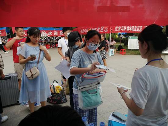 迎新工作如火如荼,到处都是忙碌的身影。学生会学长学姐们亲切友好地向新生回答着他们提出的各种问题,志愿者们主动帮拿行李,向新生们介绍学校,一路上谈笑风生。