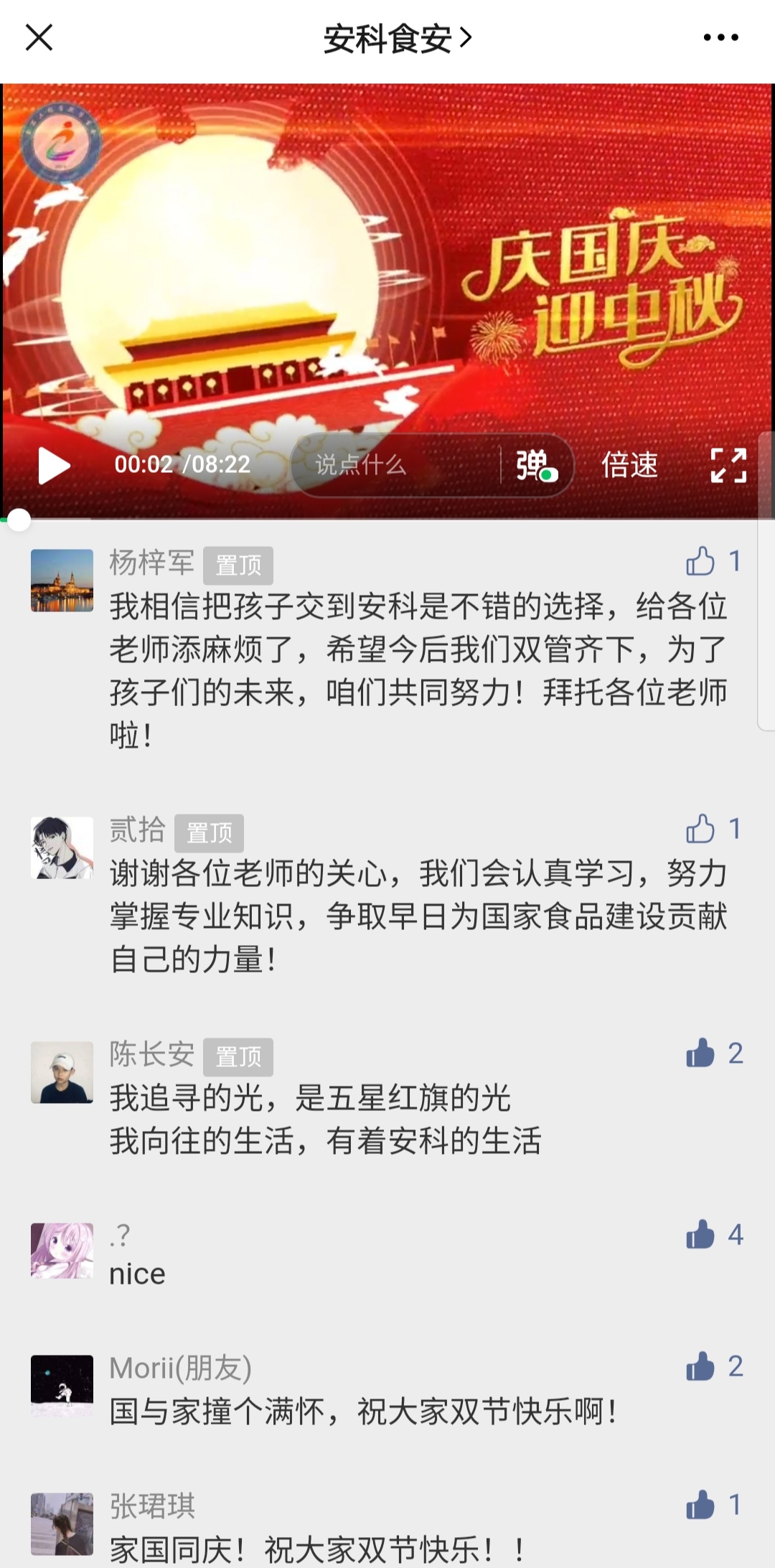 为解决新生家长对新生入校后在生活、学习上的担忧,切实提高新生对各自专业的认识,并送出食品工程学院全体师生对新生及家长国庆中秋双节的祝福,食品工程学院教职工及学生会特意录制了双节寄语,并获得了家长及学生的认可与支持。