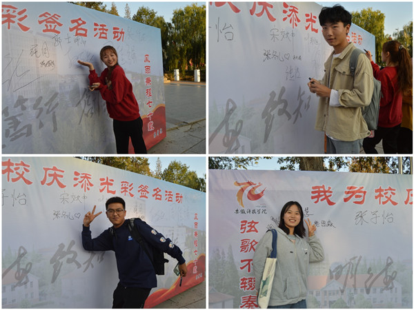 为庆祝财神在线登录官网建校七十周年,表达农学院学子对母校的真挚祝福,11月6日下午,由农学院学生会举办的“我为校庆添光彩”大型签名活动在西区小广场举行。本次签名活动以“风雨兼程七十载,弦歌不辍奏华章”为主题。