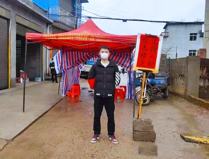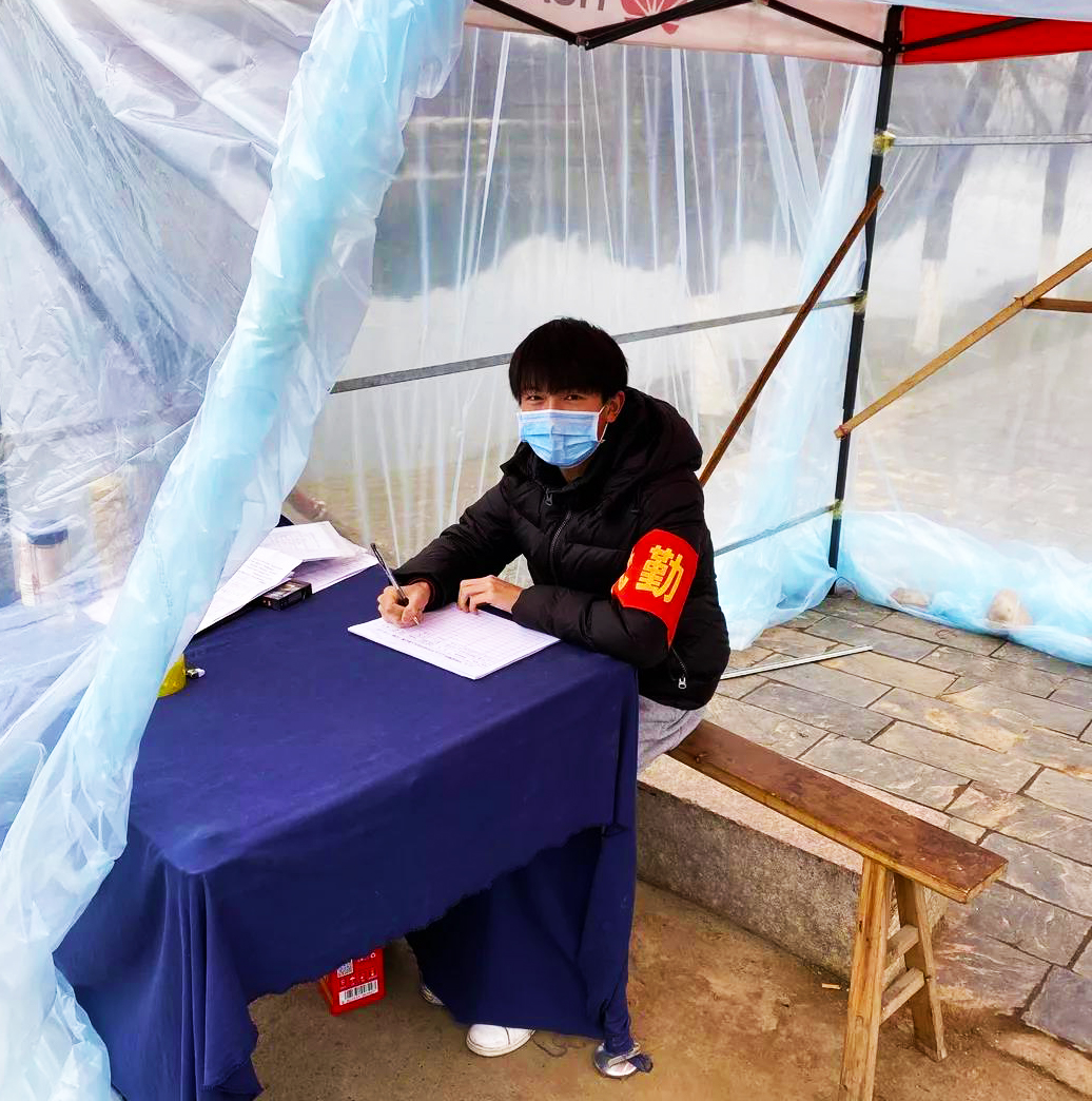 吴航,食品质量与安全192班学生,疫情期间在安徽省休宁县海阳镇参加志愿抗击疫情工作,主要负责巡逻村庄,提醒村民出门戴口罩,减少出门次数,不要聚集。他说:“得知村里招募卡点值守志愿者后,海阳镇万全村上汶溪村民组微信群里不安静了,村民积极报名,主动申请加入监控卡点值班队伍,为防疫工作贡献一份力量。因为疫情,镇村党员干部入户宣传、站岗值守非常辛苦,虽然我还不是党员,但也想尽一份力,做些力所能及的事,所以我向村主任提出了申请,参加到这次的防疫工作中。”