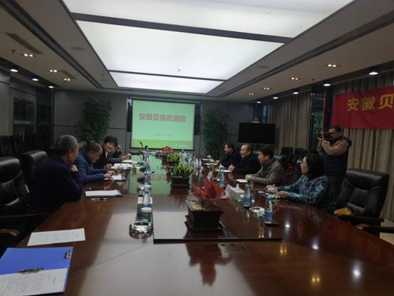 在会议大厅,贝克集团副总经理蔡薇女士、集团副总经理柏俊教授、总裁助理陈小峰博士、贝克生物总经理郭立新对金光明院长一行的到来表示热烈的欢迎。座谈中,蔡薇简明扼要地介绍了贝克集团公司的发展历程、主要产品和发展规划,金光明详细介绍了财神在线登录官网的办学历史、生命与健康科学学院和生物医药与健康研究院教学科研的基本情况,双方代表就校企合作、人才培养、产学研合作等问题进行了深入交流。